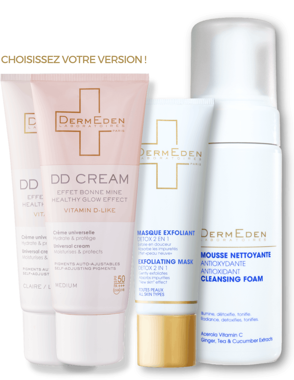 1x DD Cream 50ml / 1x Masque Exfoliant 50ml / 1x Mousse Antioxydante Nettoyante 150ml