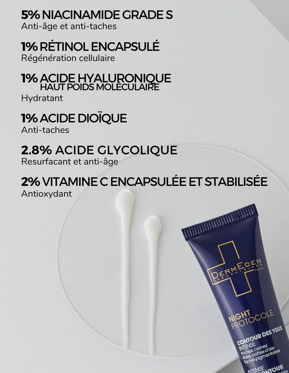 4% Acide Glycolique (dans la Crème de nuit et le Contour des yeux)